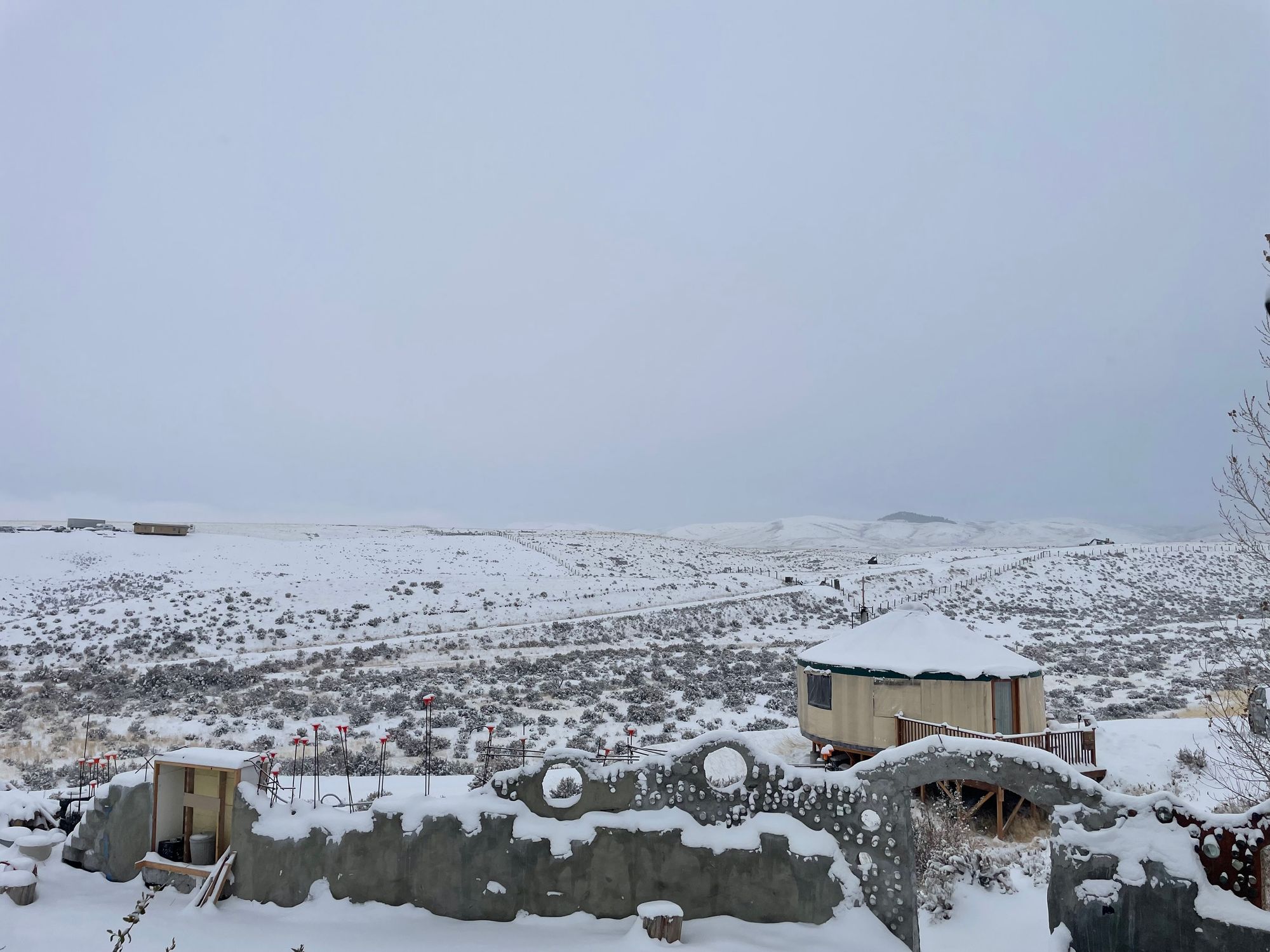 Time in yurt life was an experience, I had a woodfire that i used to keep warm (went through a good amount of the stack). Due to work, had to wake up in the extremley early. The "work space" was on the 2nd floor which meant i had to go outside, around the house, up the stairs. The closest town was pretty small but my reason for going was to get snow chains just in case... like in the case of what happened 30 minutes later while i was trying to drive up the snowy hill with my car. after 30 more minutes of struggling without chains, (driving back and forth at variouse speeds and getting stuck repeatidly 80% of the way up). I eventually used the chains and that did solve my problems. last snow problems of the trip right?
