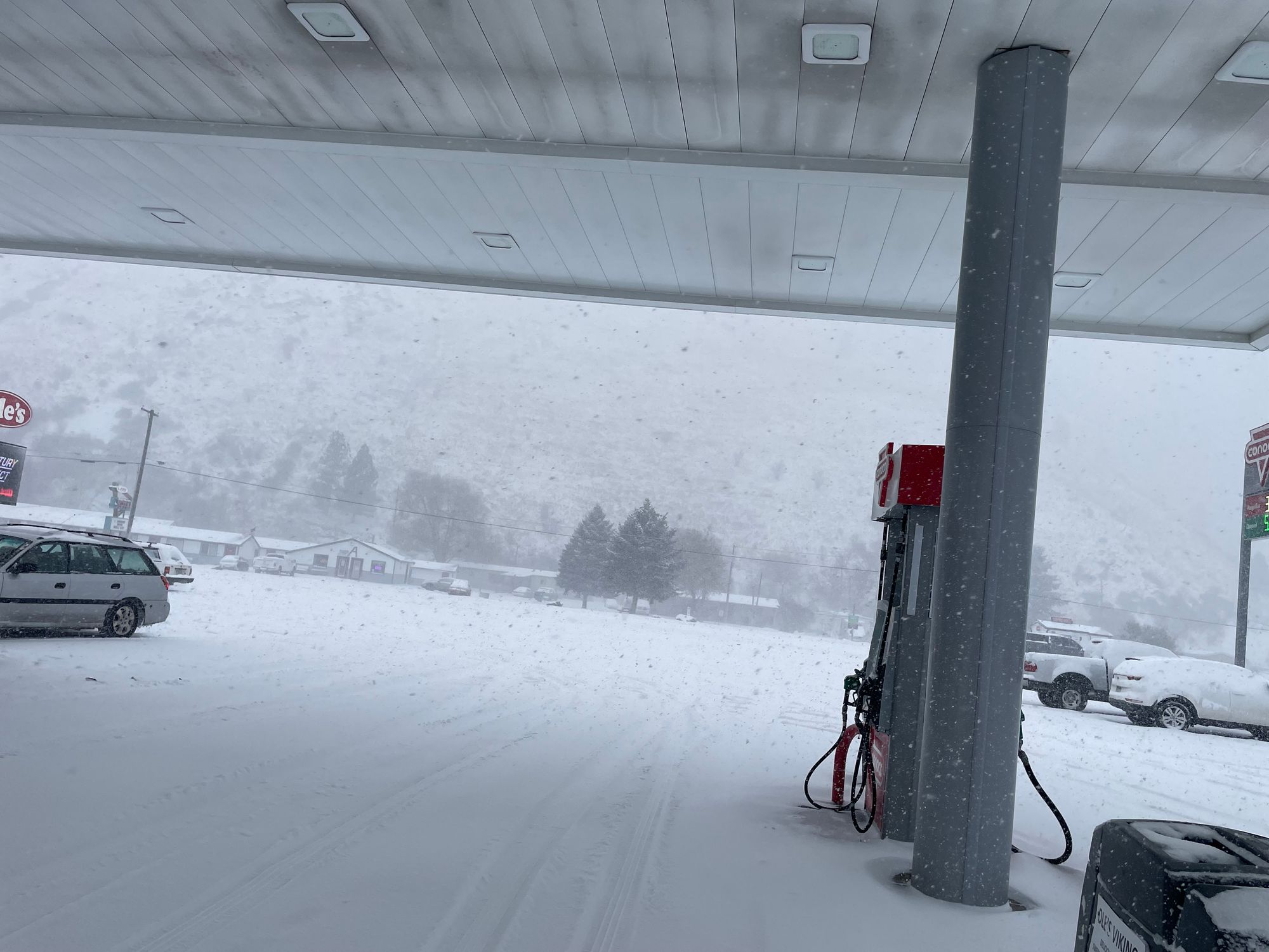so for the next 4 or so hours, i drove through minimal visbality, trafficked, blizzard roads... without said chains on. That all brought me into the mountains and hilly drives. After minor damage to the shielding under my car. we did end up making it safely to seattle, Washington.